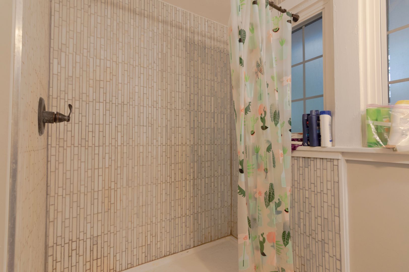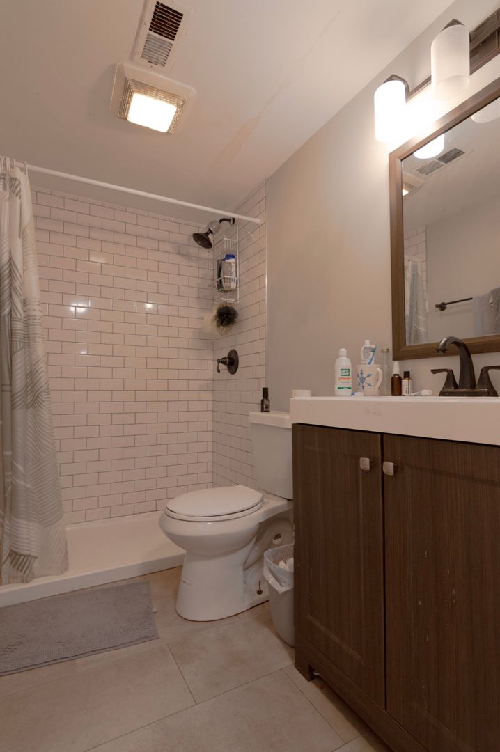 bathroom, with both bathrooms boasting stylish custom tile and
